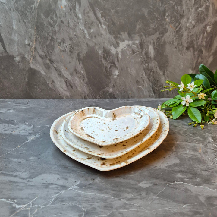 Beautiful handmade Caramel Latte Trio of stacking Hearts made from white stoneware clay from the Caramel Latte collection.