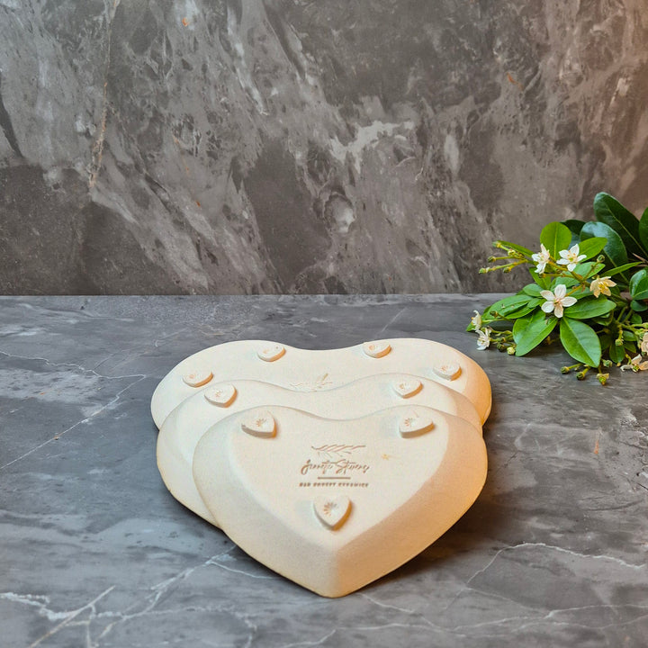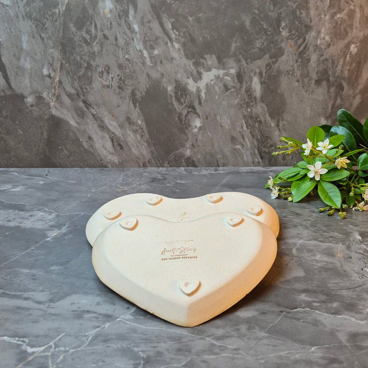 A trio of hearts, made to nestle. These stacking ceramic heart dishes are perfect for sharing — whether it’s snacks, savouries, or little treasures. Use them together or apart: one cradles the other like a quiet embrace, or they shine solo as ornamental accents. hand made with love and a touch of whimsy, they’re ideal for gifting, hosting, or simply adding a little romance to your everyday rituals. Each piece is first bisque fired to 1000C before glazing which requires multiple brushed layers to achieve the finished result, followed by a final glaze firing to 1220C. The full process takes 3-4 weeks for each piece.