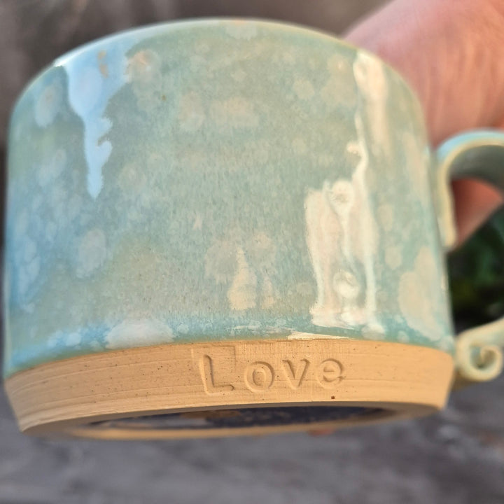 Beautiful handmade mug made from Stoneware clay from the Celadon Bloom collection.