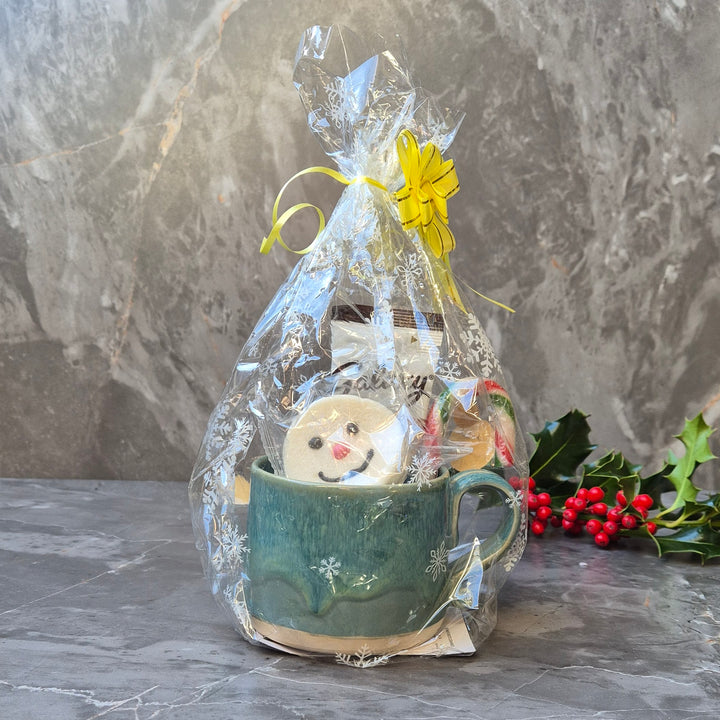 Make gifting easy this Christmas with a cosy handmade mug set, beautifully wrapped and ready to give. Each mug comes with a delicious hot chocolate sachet, a festive candy cane, and an adorable snowman-face marshmallow to float on top. The set is gift-wrapped in clear cellophane and finished with a ribbon, making it perfect for Secret Santa, stocking fillers, teacher gifts, or anyone who deserves a winter treat. These sets are offered at a special discount as the marshmallow has a best-before date of May 2026, so they’re ideal for enjoying this Christmas season. Each piece is first bisque fired to 1000C before glazing which requires multiple brushed layers to achieve the finished result, followed by a final glaze firing to 1220C. The full process takes 3-4 weeks for each piece. Click here to see how this was made