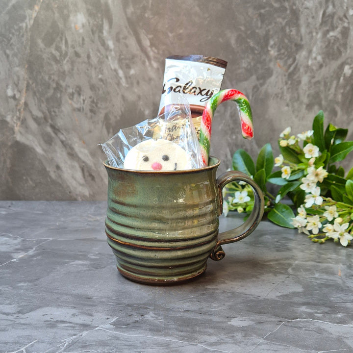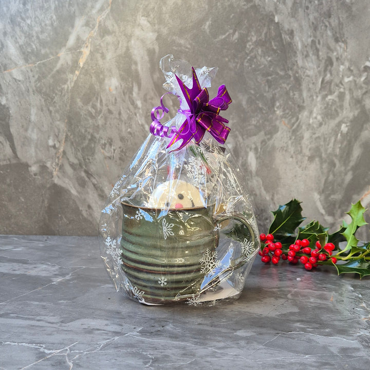 Make gifting easy this Christmas with a cosy handmade mug set, beautifully wrapped and ready to give. Each mug comes with a delicious hot chocolate sachet, a festive candy cane, and an adorable snowman-face marshmallow to float on top. The set is gift-wrapped in clear cellophane and finished with a ribbon, making it perfect for Secret Santa, stocking fillers, teacher gifts, or anyone who deserves a winter treat. These sets are offered at a special discount as the marshmallow has a best-before date of May 2026, so they’re ideal for enjoying this Christmas season. Each piece is first bisque fired to 1000C before glazing which requires multiple brushed layers to achieve the finished result, followed by a final glaze firing to 1220C. The full process takes 3-4 weeks for each piece.