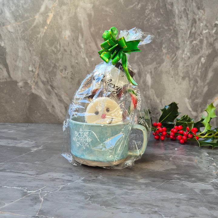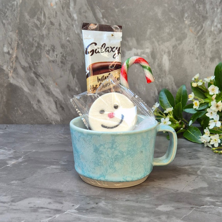 Make gifting easy this Christmas with a cosy handmade mug set, beautifully wrapped and ready to give. Each mug comes with a delicious hot chocolate sachet, a festive candy cane, and an adorable snowman-face marshmallow to float on top. The set is gift-wrapped in clear cellophane and finished with a ribbon, making it perfect for Secret Santa, stocking fillers, teacher gifts, or anyone who deserves a winter treat. These sets are offered at a special discount as the marshmallow has a best-before date of May 2026, so they’re ideal for enjoying this Christmas season. Each piece is first bisque fired to 1000C before glazing which requires multiple brushed layers to achieve the finished result, followed by a final glaze firing to 1220C. The full process takes 3-4 weeks for each piece.