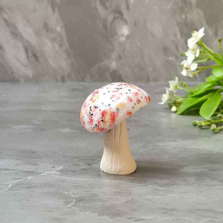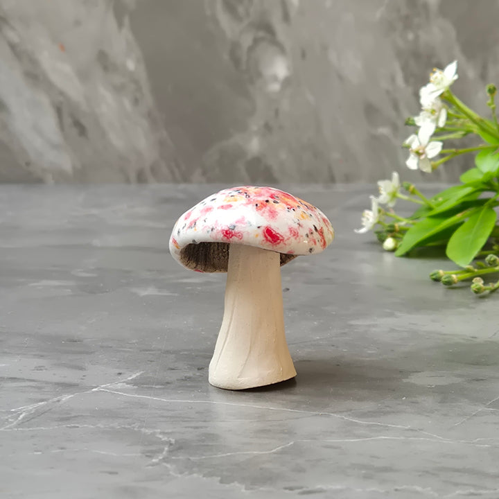 Whether perched on a shelf, tucked into a terrarium, or gifted to a nature-loving friend, these little fungi bring a touch of woodland magic wherever they go. Each piece is first bisque fired to 1000C before glazing which requires multiple brushed layers to achieve the finished result, followed by a final glaze firing to 1220C. The full process takes 3-4 weeks for each piece.