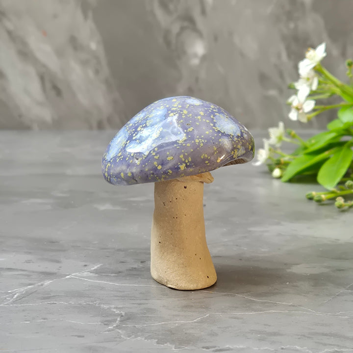 Whether perched on a shelf, tucked into a terrarium, or gifted to a nature-loving friend, these little fungi bring a touch of woodland magic wherever they go. Each piece is first bisque fired to 1000C before glazing which requires multiple brushed layers to achieve the finished result, followed by a final glaze firing to 1220C. The full process takes 3-4 weeks for each piece.