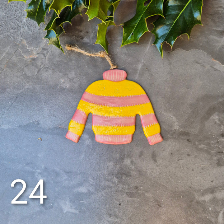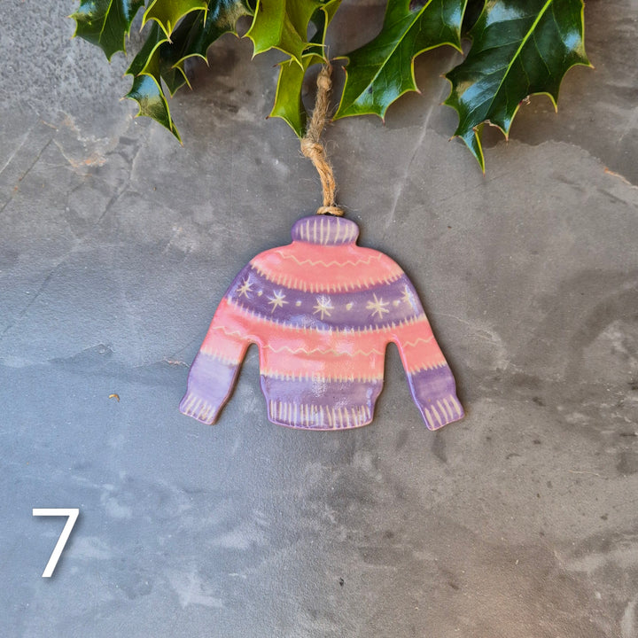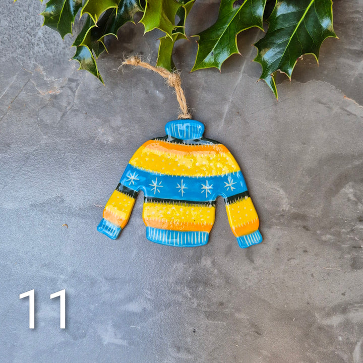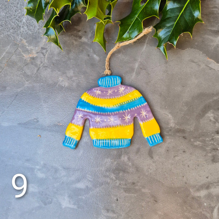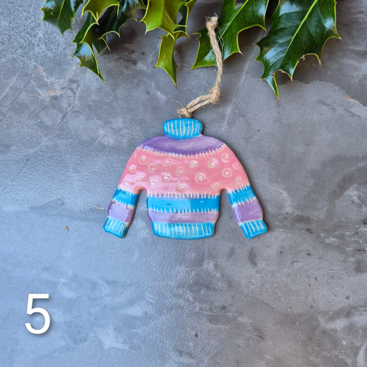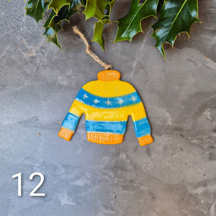 Beautiful handmade Ugly Jumper Ornament made from white stoneware clay from the Ugly Jumper collection.