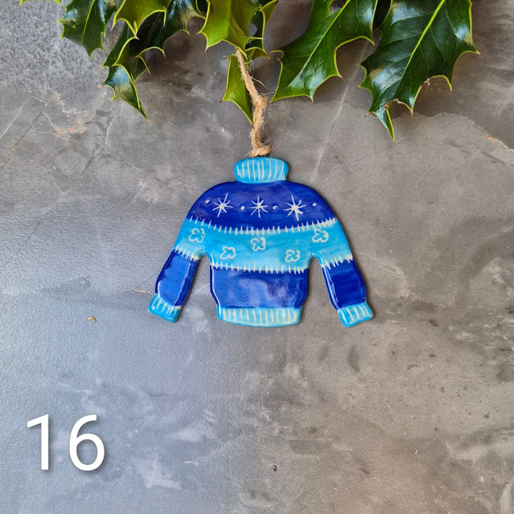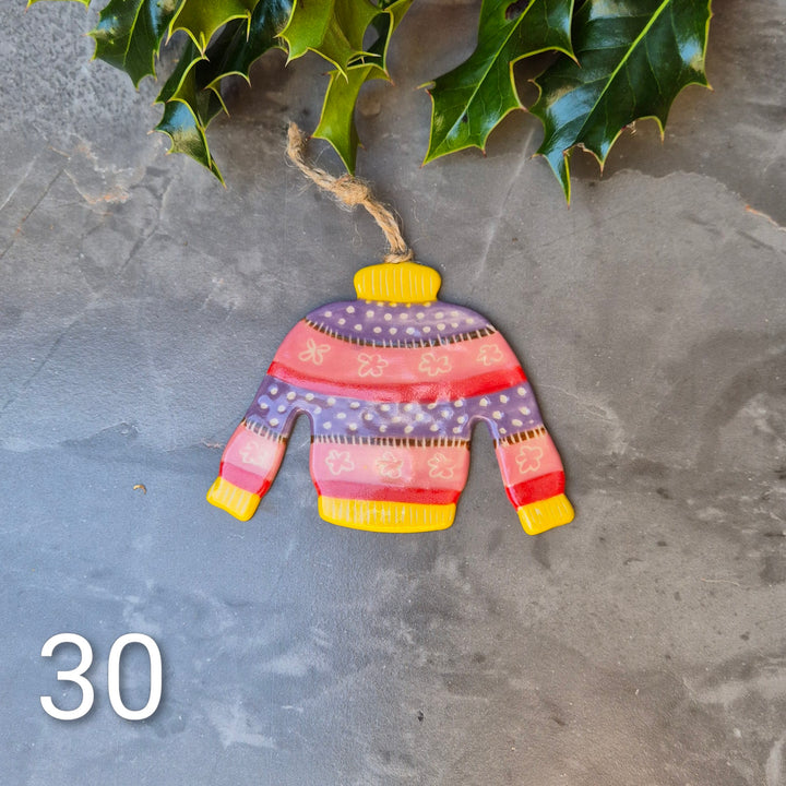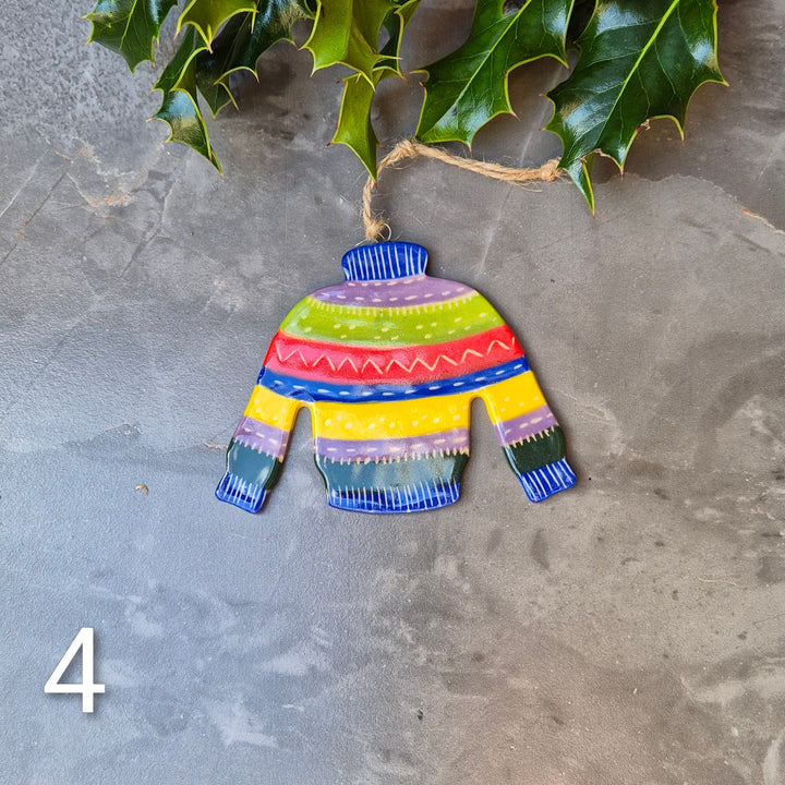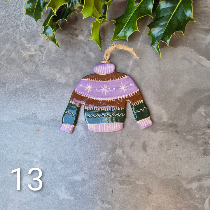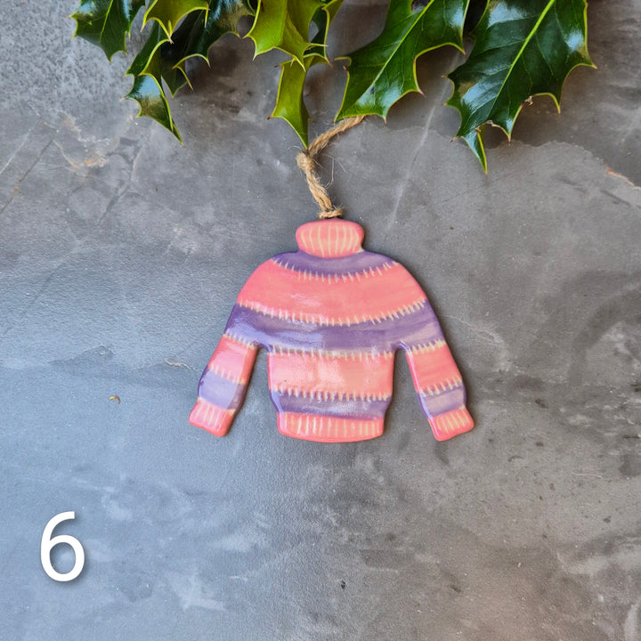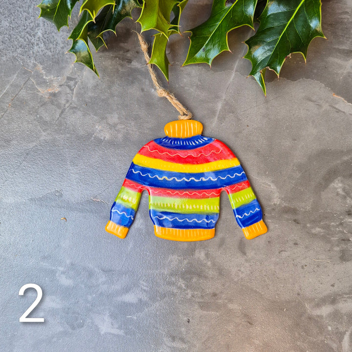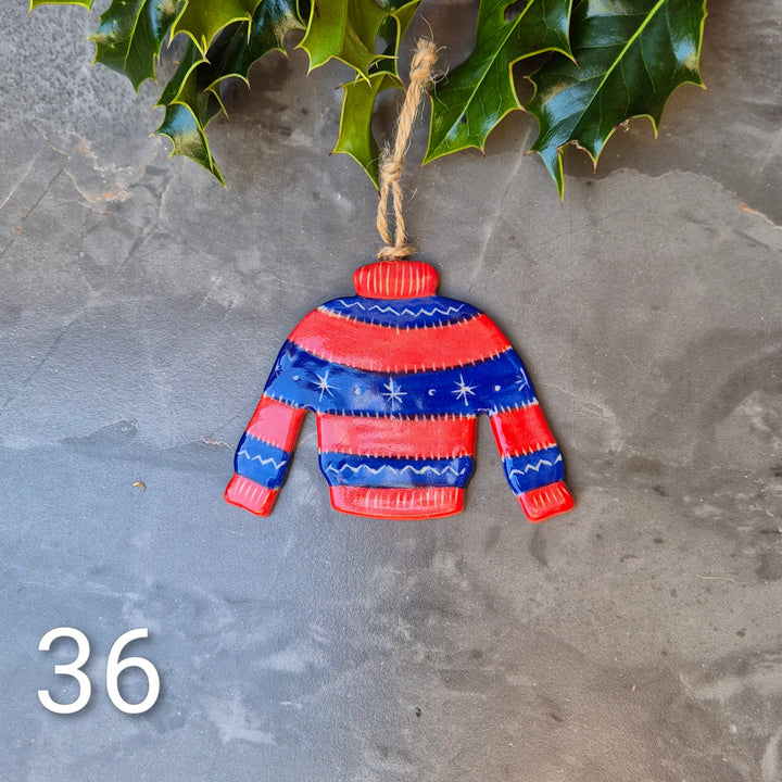 Beautiful handmade Ugly Jumper Ornament made from white stoneware clay from the Ugly Jumper collection.