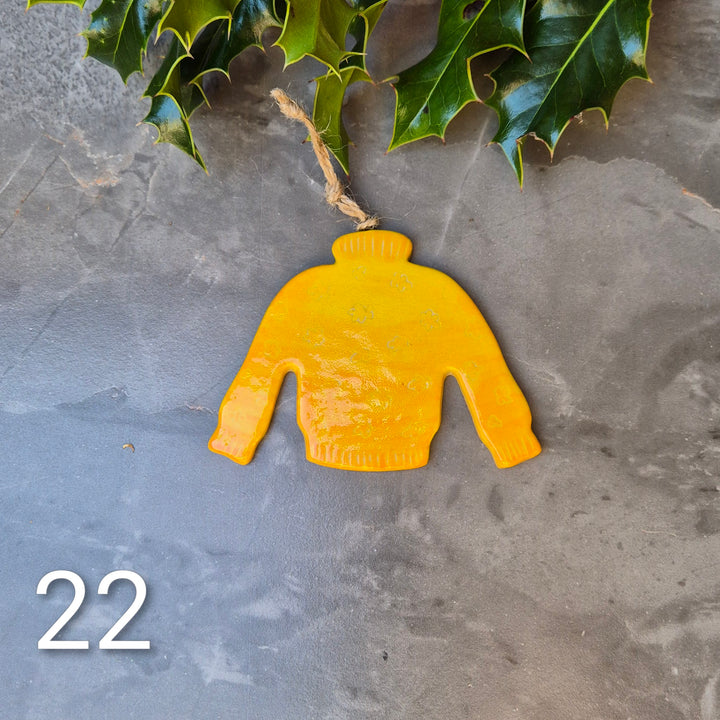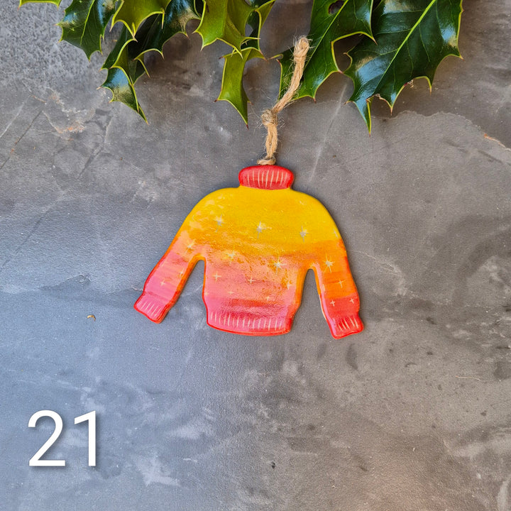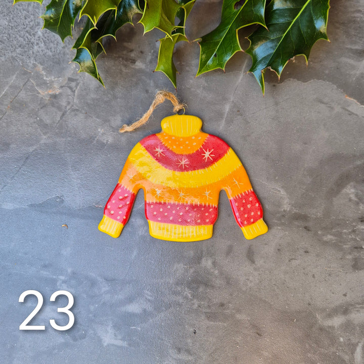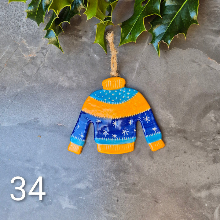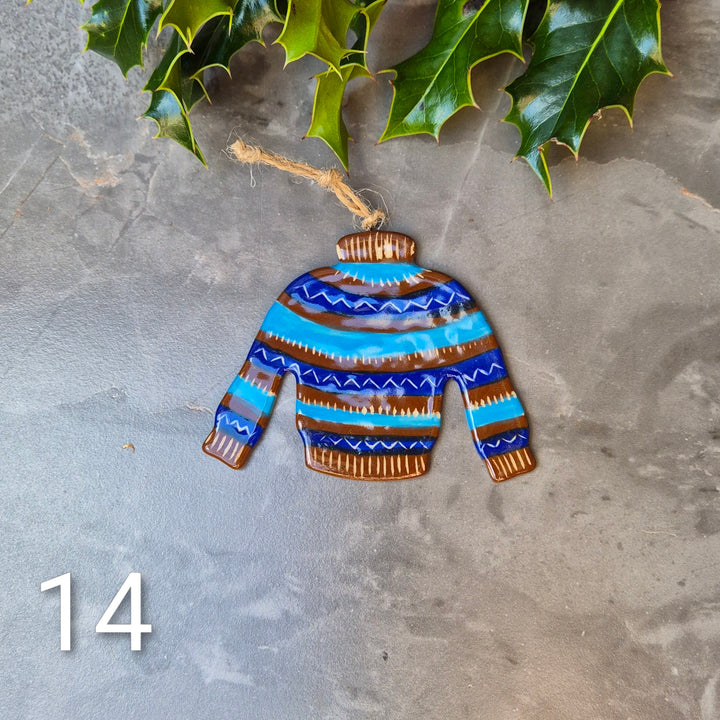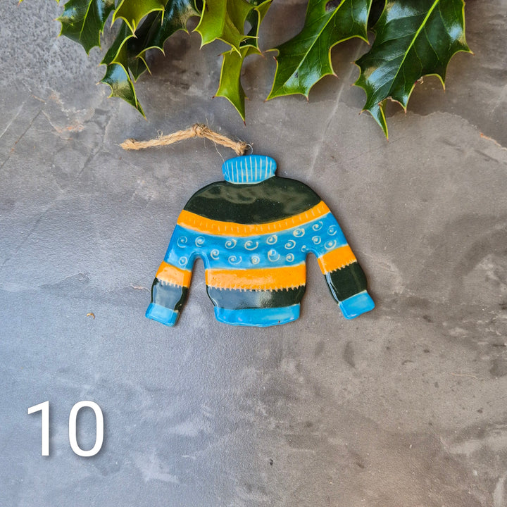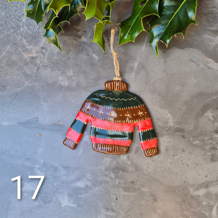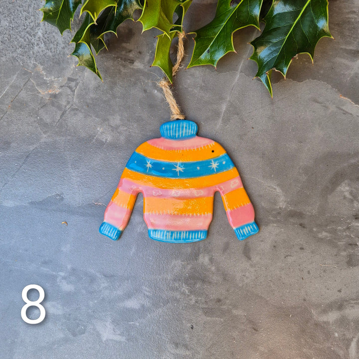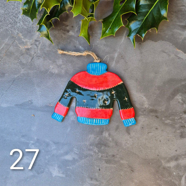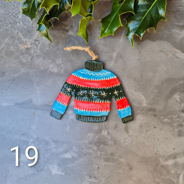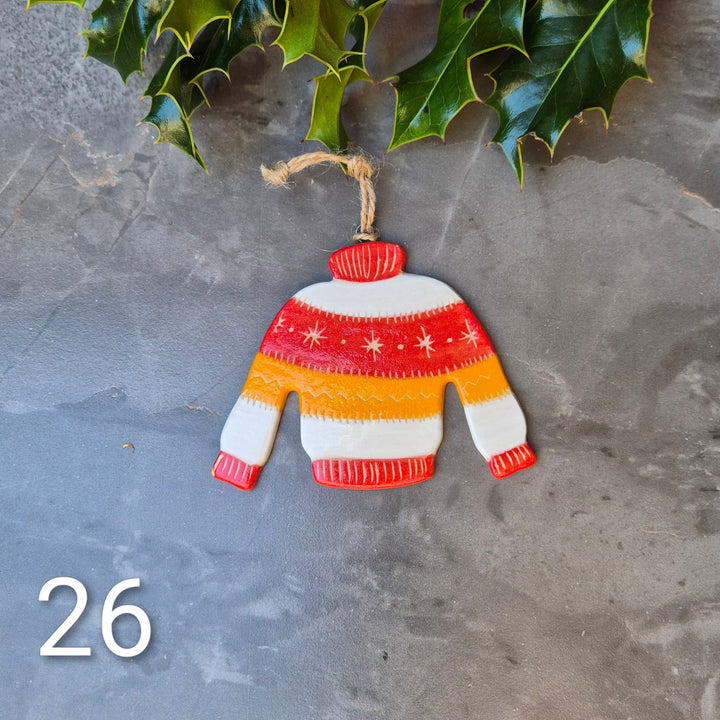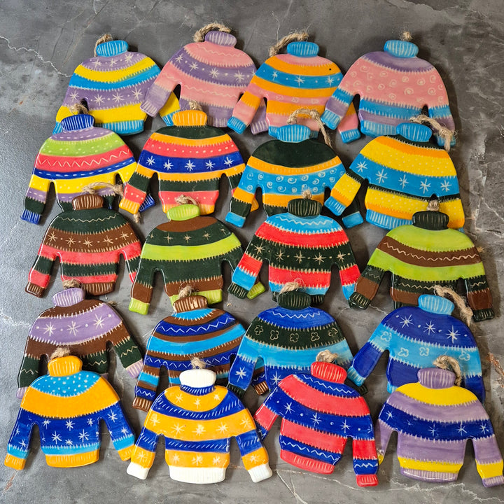 Ugly Jumper Ornaments – Hand-Carved with Sgraffito Charm.