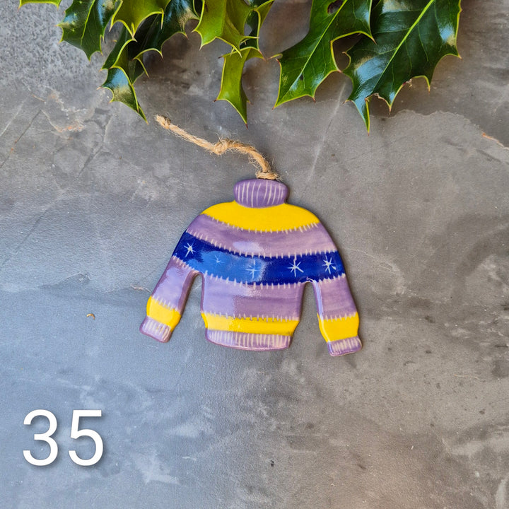 Perfect for decorating your tree, gifting to a friend, or adding a bit of quirky charm to your home. No two are alike — just like the best jumpers. Each piece is first bisque fired to 1000C before glazing which requires multiple brushed layers to achieve the finished result, followed by a final glaze firing to 1220C. The full process takes 3-4 weeks for each piece.